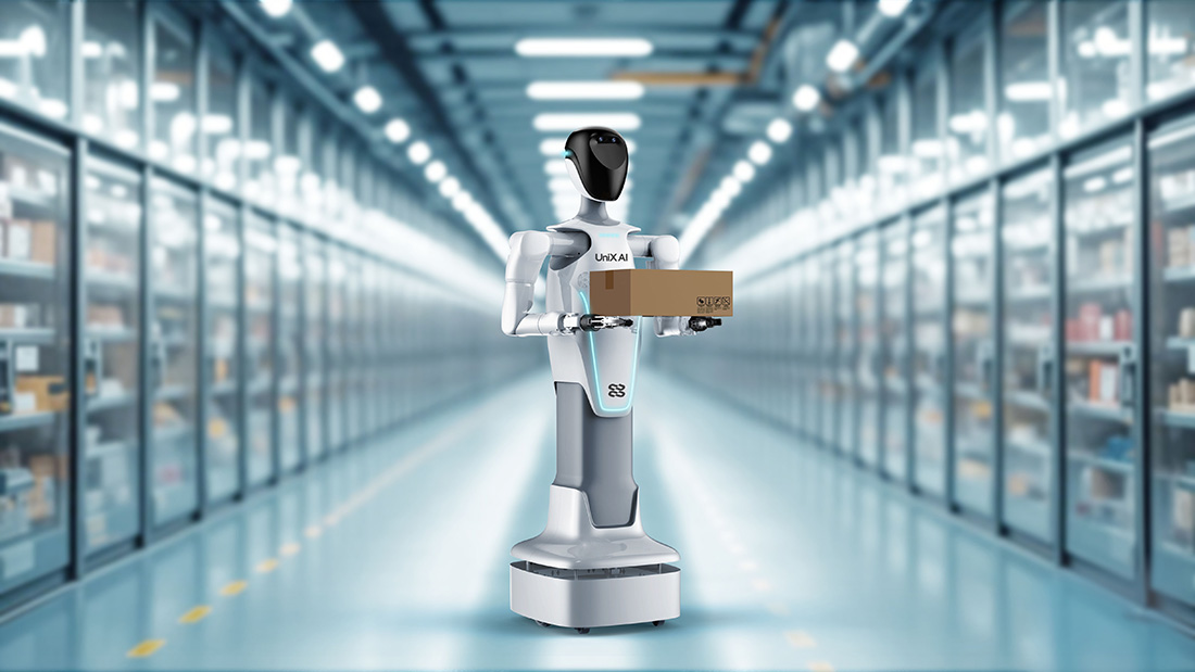 全尺寸等身机器人 Wanda ,身高高达 168cm,拥有 33 个高自由度关节,可应对空间狭窄、任务复杂的多场景操作。